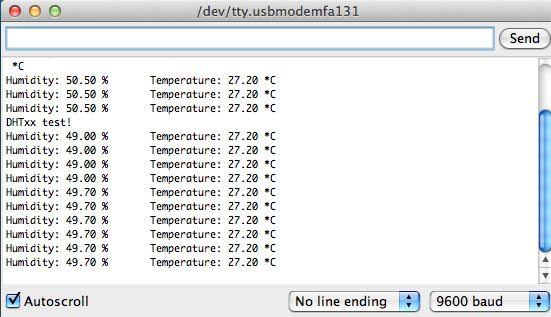 This one was super easy to wire up following the Adafruit tutorial. I installed the DHT22 Adafruit Library and ran the sketch to test the sensor.